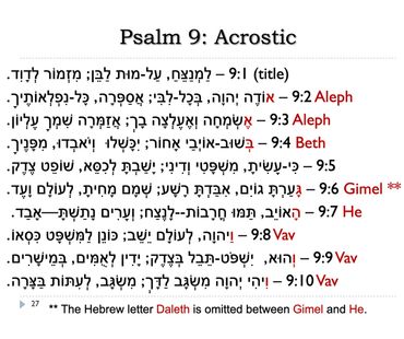 Psalm 27 includes one of the texts most frequently set to music in the Book of Psalms. It is a declaration of faith and trust in God, emphasizing the psalmist's confidence in God's protection and deliverance from enemies. It expresses a longing to dwell in God's presence, seek God's guidance, and remain confident in God's salvation despite facing adversity.